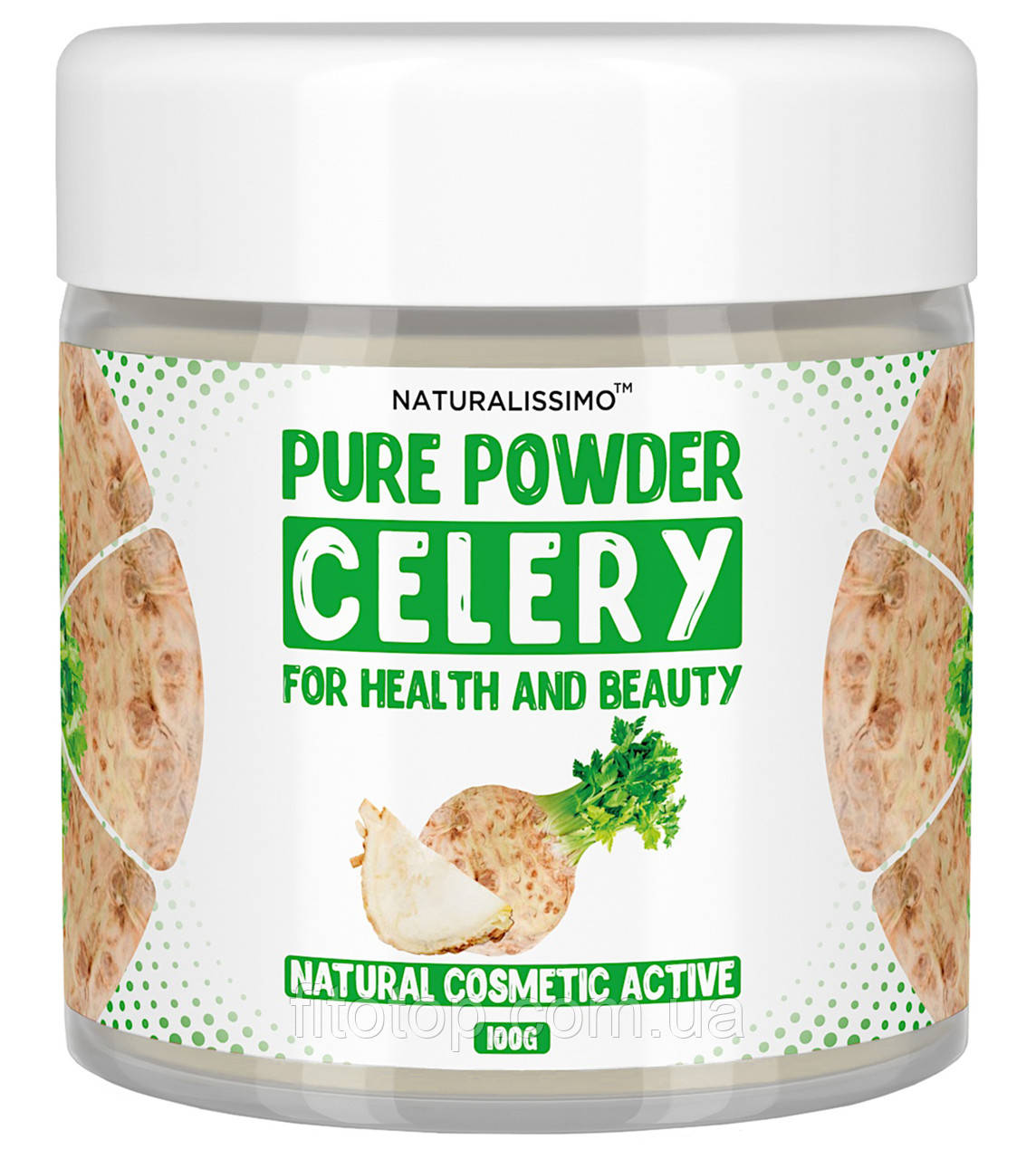 Пудра селери – абсолютно натуральний продукт, отриманий шляхом мікронізація і подрібнення вихідної сировини до однорідного порошкоподібного стану. Готовий продукт містить у собі всі активні компоненти і зберігає косметичні властивості, якими володіє сам овоч.