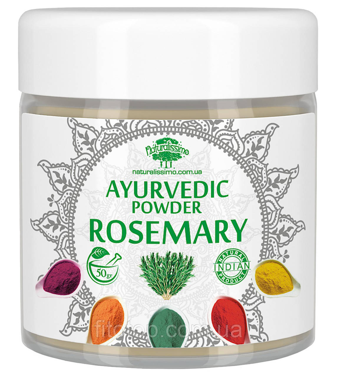 Аюрведична пудра розмарину (Rosmarinus, Rosemary Powder) — це дбайливо висушена та подрібнена в порошок рослина, що зберігає в собі всі корисні властивості. Має антисептичний ефект, очищає, тонізує, відновлює.